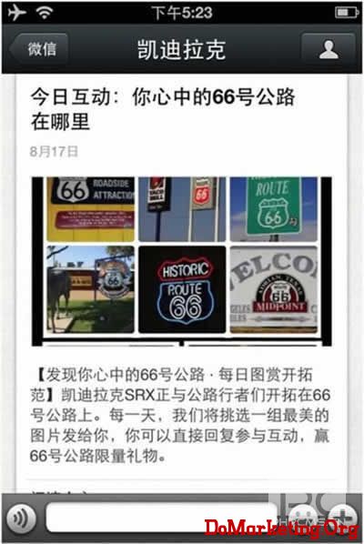 案例九:凯迪拉克微信公众账号运营 模式:公众平台