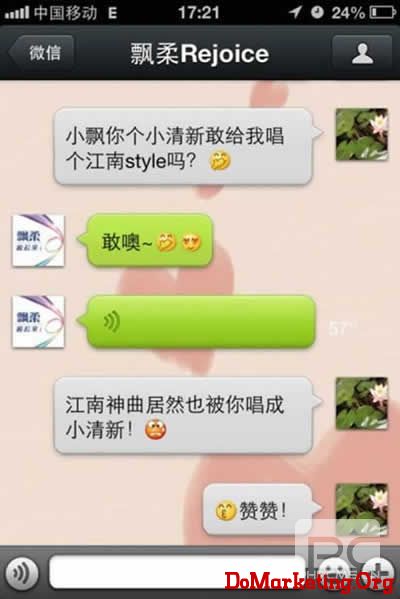 营销方式:现在微信开放平台已经提供了基本的会话功能,让品牌用户之间做交互沟通,但由于陪聊式的对话更有针对性,所以品牌无疑需要大量的人力成本投入。