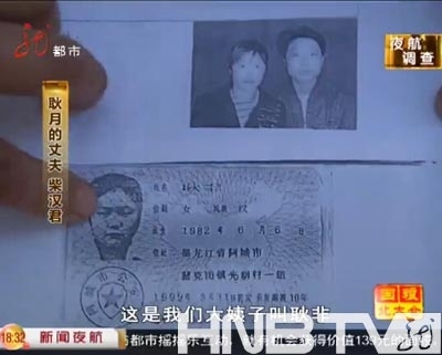 耿月的丈夫说,登记表结婚照片上是耿月,但身份证却是耿非的。(视频截图)