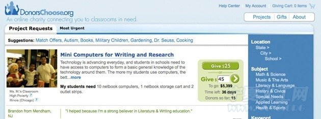 “捐赠者选择”(DonorsChoose)与Crate & Barrel礼券