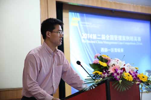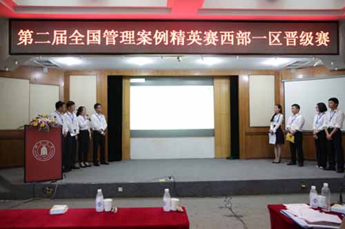2014年7月12日,来自西部5所MBA培养院校的师生齐聚四川大学商学院,参加2014年第二届全国管理案例精英赛西部一区晋级赛。经过四轮的激战,最终来自四川大学商学院的“好孩子”队伍斩获本场晋级赛的冠军,亚军和季军队伍分别由兰州交通大学的“沙漠之舟”和西南交通大学的“海盗船”队获得。冠军队伍将代表四川大学商学院参加9月在北京举办的全国总决赛。全国管理案例精英赛由全国工商管理(MBA)专业学位研究生教育指导委员会、中国管理案例共享中心、中国管理案例中心联盟及中国管理现代化研究会管理案例研究专业委员主办。比赛旨在推进和繁荣我国工商管理教育,检验案例教学成果,加强商学院间的交流与合作。四川大学商学院承办了本次西部一区晋级赛。四川大学商学院副院长邓富民教授、四川大学商学院MBA教育中心宋琦主任出席。参加此次比赛的有兰州理工大学、兰州交通大学、四川大学、西南财经大学、西南交通大学等六所院校、八支参赛队。大连理工大学的冯长利副教授等五位专家担任了比赛的评委。