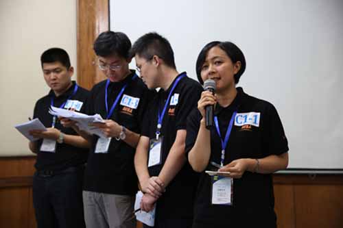 比赛正式开始,本次比赛采用两队同台进行案例陈述的 “大小PK”比赛模式。首先进行的“小PK”环节中,甲乙两队上场,甲队陈述,乙队针对甲队陈述提问;乙队陈述,甲队针对乙队陈述提问。新的比赛模式要求一组参赛队的4位队员均须陈述,通过团队合作完成案例分析;在提问环节中,台上提问者可指定对方某位队员回答,被指定的队员进行回答之后,可由台上或台下的队友补充回答。在接下来的“大PK”环节中,台下队伍、观众和评委向台上两支队伍提问,并可指定台上的某位参赛队员进行回答。在一轮轮的交锋中,场上队员与台下队员相互配合,针对案例中存在的问题提出多方面的解析。在队伍之间的大PK环节,评委与观众精彩的提问引来了热烈的掌声。