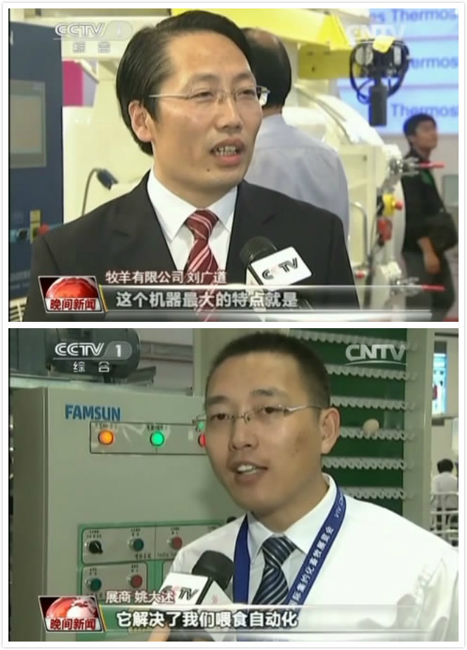 9月23日新闻联播、9月24日晚间新闻,央视CCTV-1综合频道以“国际畜牧业展会 ‘智能机’受宠”为题,连续两天对牧羊饲料、养殖智能化新品深入报道。同期在本次展会上,牧羊有限公司范天铭总裁与全球大客户高层代表、行业顶级专家、行业核心媒体共同见证发布了国际领先的新型齿轮式颗粒机。