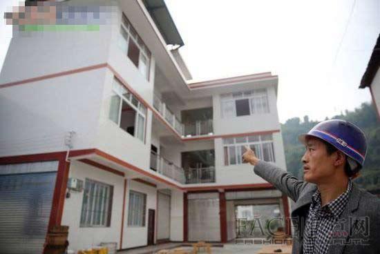 舒正山指着新房说:“我将乔迁宴席的猪肉分给村民吃,竟被大家误传是灾后大鱼大肉。”